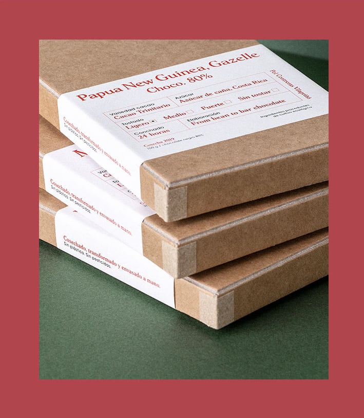 Pol Contreras Vilapriñó es chocolatero, cocinero y culo inquieto en general. Necesita un packaging para entregar sus tabletas de chocolate, pero quiere algo poco pretencioso, versátil y libre de plástico, que le permita una producción artesanal en la que los ingredientes pueden cambiar en cualquier momento y las tiradas pueden ser tanto de 10 tabletas como de 300.